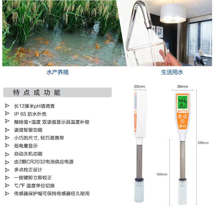 臺(tái)灣衡欣AZ8689筆式酸堿計(jì)新款水質(zhì)檢測(cè)儀表|水質(zhì)分析儀器