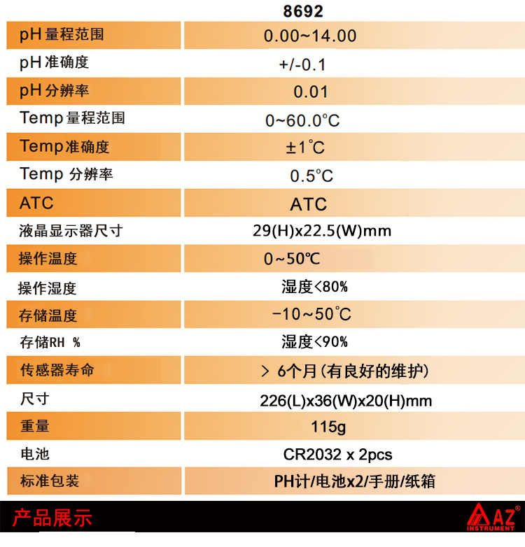 | 酸鹼度范圍 | 2.00~12.00 |